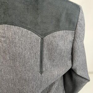 Mens western blazer/sport coat in a heathered gray fabric with contrasting dark charcoal faux-suede style yoke panels on the front and back.