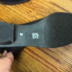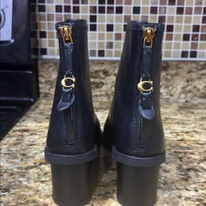 Sleek black leather booties by Coach. Perfect for versatile styling.