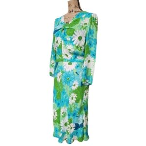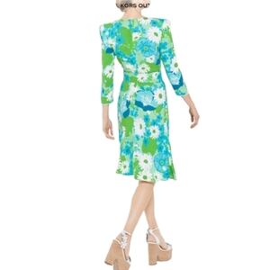Michael Kors Collection Floral Crepe-Sablé Dress, Teal, Green, Womens 8 NWT