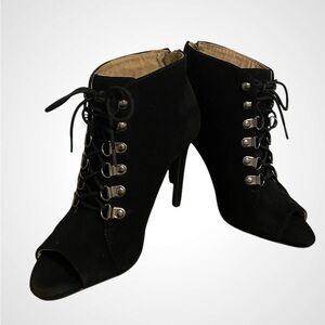 G.I.L.I. | Black Lace-Up Peep-Toe Stiletto Boots | Gi-Feliana Suede Boot NWOB 7