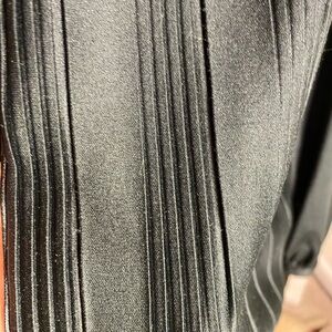 Elevate your style with this vintage Miss Dior elegant, black pleated button-down shirt. Perfect for casual outings or a night out. This is a rare find from the 70's, hence the pointed collar...