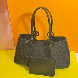 Gucci Black Monogram Tote hand bag comes with personal wallet in good condition