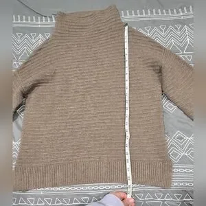 Great condition. Size XS. Brown in color. Ribbed ottoman stitches. Relaxed mock neck. Coziest yarn. Longsleeves. Slightly oversized. Measurements and fabric content listed above in pictures. Last picture is of style not the color you will be getting.