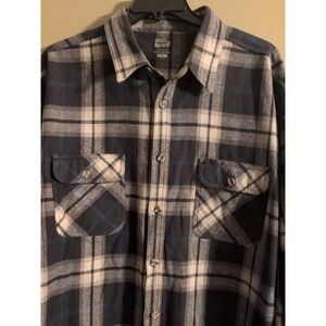 Work N' Sport 3XLT Black White Blue Plaid Long Sleeve Flannel Button Shirt EUC