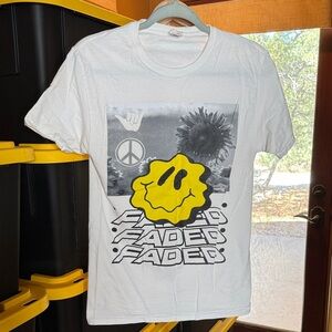 Smiley Design Faded Sunflower Peace Shaka Cotton White Graphic Tee Size Small