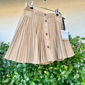 Red Valentino Pleated Mini Skirt Beige Tan Micro Skort Size 40 US 4 Small NWT