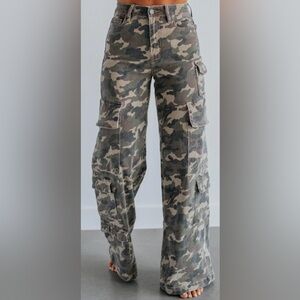 Elevate your style with these Nori Hidden Camo wide leg pants. Featuring a trendy camouflage pattern, these pants are perfect for a bold, fashionable look. Ideal for casual outings or making a statement.