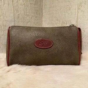 Mulberry Scotchgrain Wash Case/Clutch in Green Pebble/Chestnut