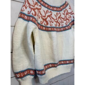 Vintage Ski Sweater Coral Teal White Wool Knit Cozy Winter High Neck Est LG
