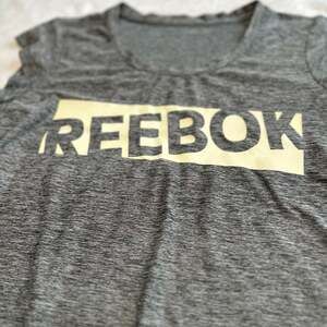 Reebok Women's Legend Graphic Shirt in Sea Fog Heather. This short-sleeve top features a stylish graphic, perfect for active wear or casual outfits. Made for comfort and versatility, it's a great addition to any wardrobe. Pre-owned condition.