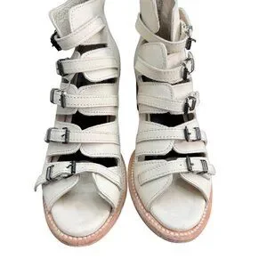 FREEBIRD Quinn Heeled Beige Leather Strap Sandals Women's Dust Bag & Box, Sz 8