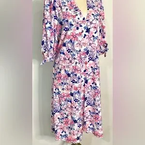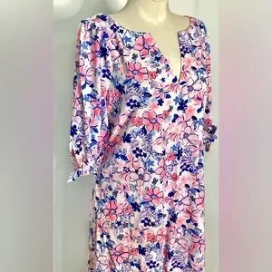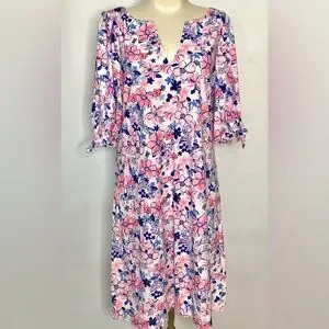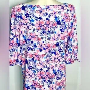 Lilly Pulitzer Pink and Blue Floral 3/4 Sleeve Cotton Dress