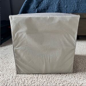 A stylish gray purse storage bin for closet organization. In excellent condition. Folds down when needed when not in use. Smoke free home. Originally purchased from Container Store. Dimensions are in the photos.