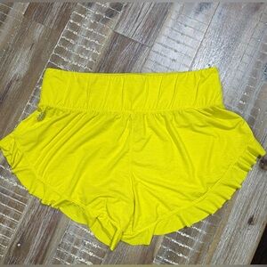 Free People Movement Featherweight Layering Ruffle Shorts Dandelion Neon Yellow