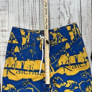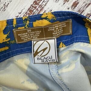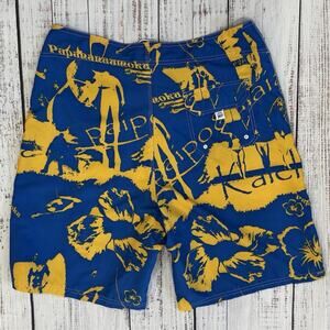 Beach Rays Hawaii Print Board Shorts Men’s 36 Yellow Blue Vintage Surf