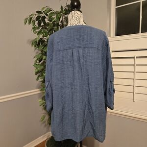 Torrid 3X Blue Gauze V-Neck 3/4 Sleeve Shirt With Pockets