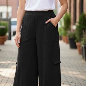 Chic black soft to the touch cupro cargo pants by Lululemon Athletica. Perfect for versatile styling.