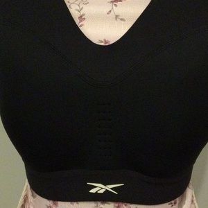Made of 73% nylon and 27% spandex. Features adjustable, crisscross straps and 3 x 3 hook & eye closure. Wicks away moisture to stay cool and dry during workout. Designed for comfort and support. Hardly worn, and in like new condition, i.e., no rips, stains, or other damage!
