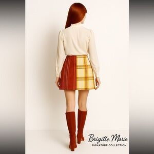Stylish patchwork plaid skirt. Silk paisley and plaid mini skirt. Zipper back closure. New Handmade.