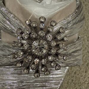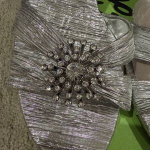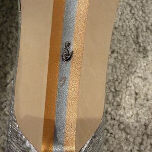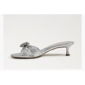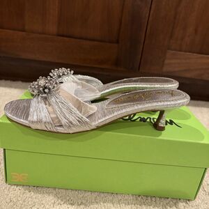 NIB Sam Edelman Women's Cindie Kitten Heel Mule In Soft Silver Satin Size 7 Sexy