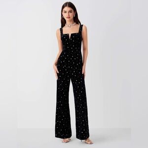Cider Black Velvet Starry Night Jumpsuit 1XL