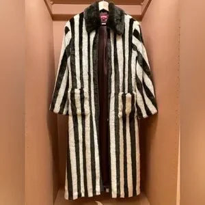 Luxurious faux fur coat with striking stripes. Ideal for chic outings.