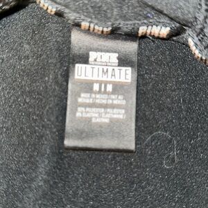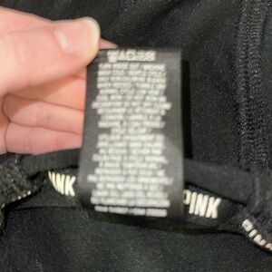 A black and pink athletic jacket from Victoria’s Secret pink size medium 92% polyester 8% Elastane size medium from pink Victoria’s Secret ultimate brand it is missing the drawstring in the hood, but other than that in good condition