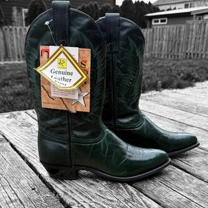 Vintage Texas Brand Women’s Cowboy Boots, New with Tags. Made in the USA. Dark Green -Excellent Vintage Condition.
