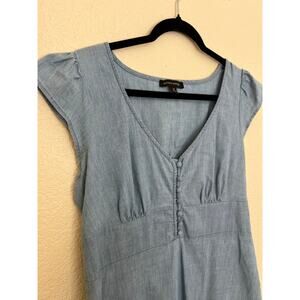 Banana Republic Chambray Blue Cotton Blend Cap Sleeve Button Front Mini Dress 12