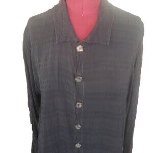 CP Shades Shirt Black Stripe Rayon Collar Button Front Long Sleeve Large