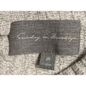 The Women's Sunday In Brooklyn Sleeveless Mock Neck Hi-Low Hem Ribbed Top in Medium is a versatile and stylish piece perfect for various occasions. Made from a poly/spandex blend with a tight-knit fabric, this top features a mock neck and a sleeveless design for a classic look. The beige color and solid pattern make it easy to pair with different outfits, while the hi-low hem adds a unique touch to the garment. With its lightweight and breathable features, this sweater is suitable for all seasons and can be machine washed for easy care. Perfect for travel, parties, casual outings, workwear, or business settings, this top from the brand Sunday in Brooklyn is a must-have addition to any woman's wardrobe.