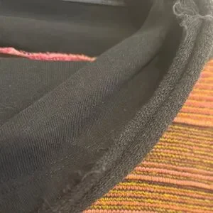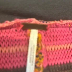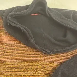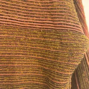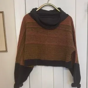 Stylish cowl neck sweater with multicolor stripes. Features a relaxed fit and long sleeves. Perfect for casual wear.