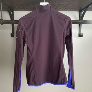 Two toned color block active zip up sweatshirt from Gap active. Blue and brown/plum colored. Zip pocket on upper sleeve. Great condition, size small