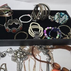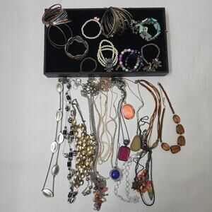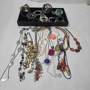 Huge Lot Of Costume Jewelry 16 Necklaces + 20 Bracelets All Wearable Colorful