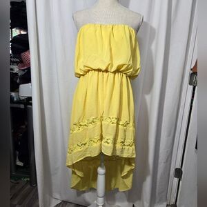 Double zero yellow strapless high low dress sz L