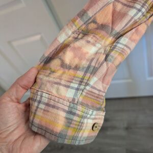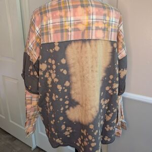 NWOT Stylish tie-dye hoodie with plaid accents. Features drawstring detail. Comfortable and trendy.