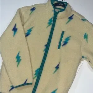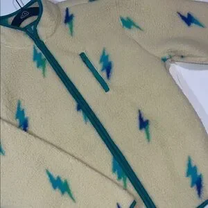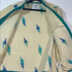 Old Navy Cream Fleece Jacket with Blue and Green Lightning