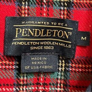 Pendleton Red Tartan Plaid Virgin Wool Button Down Shirt Washable Size Medium