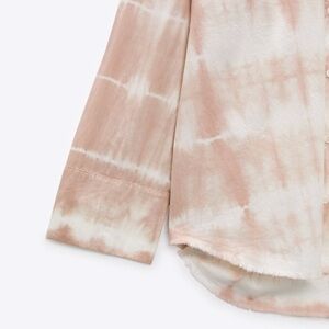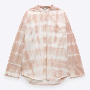 NWT - Zara Pink and White Tie Dye Button Front Long Sleeve Woven Top sz …