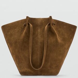 👒 MANGO 👒 SUEDE LEATHER SHOPPER BAG TOBACCO BROWN