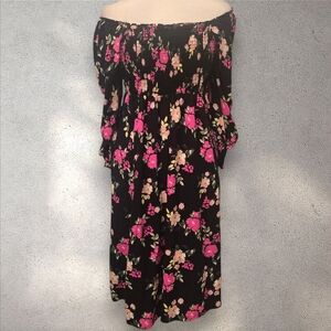 Torrid Black Floral Challis Smocked Dress Size 1X