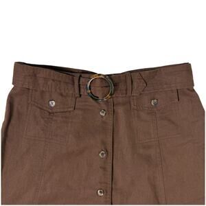 Coldwater Creek Belted Tea Length A-Line Midi Skirt | Linen Cotton Brown | PS