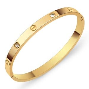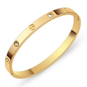 18K Gold Plated Love Screw & Diamond 4mm Stackable Bangle Bracelet With Screwdriver No Fade Engraved Inspired Design