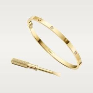 18K Gold Screw & Diamond Love Bracelet Cuff Stackable Bangle Engraved No Fade