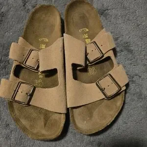 Soft suede sandals with adjustable straps. Ideal for casual outings.
