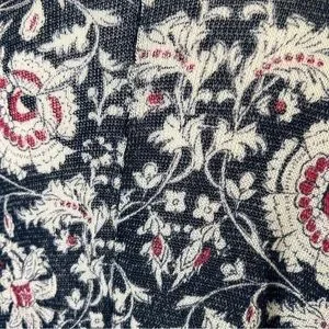 Navy blue with pink/red and white floral pattern