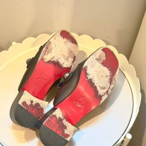 Christian Louboutin Black Leather Mules with Fringe and Studs