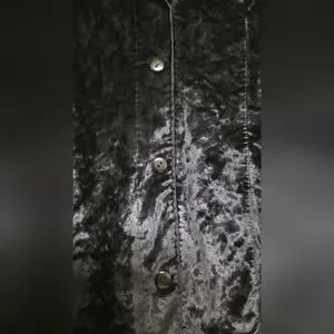 This chic black velvet button down shirt offers a sleek and stylish look. Perfect for elevating your wardrobe with a touch of elegance.