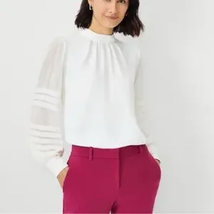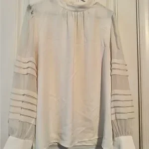 Ann Taylor white Blouse with Sheer Sleeves