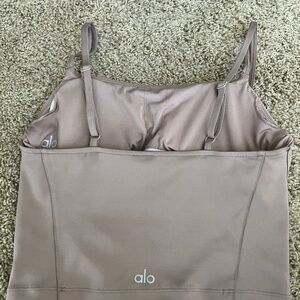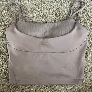 Stylish taupe tank top. Sleek design. Perfect for yoga or casual wear.
